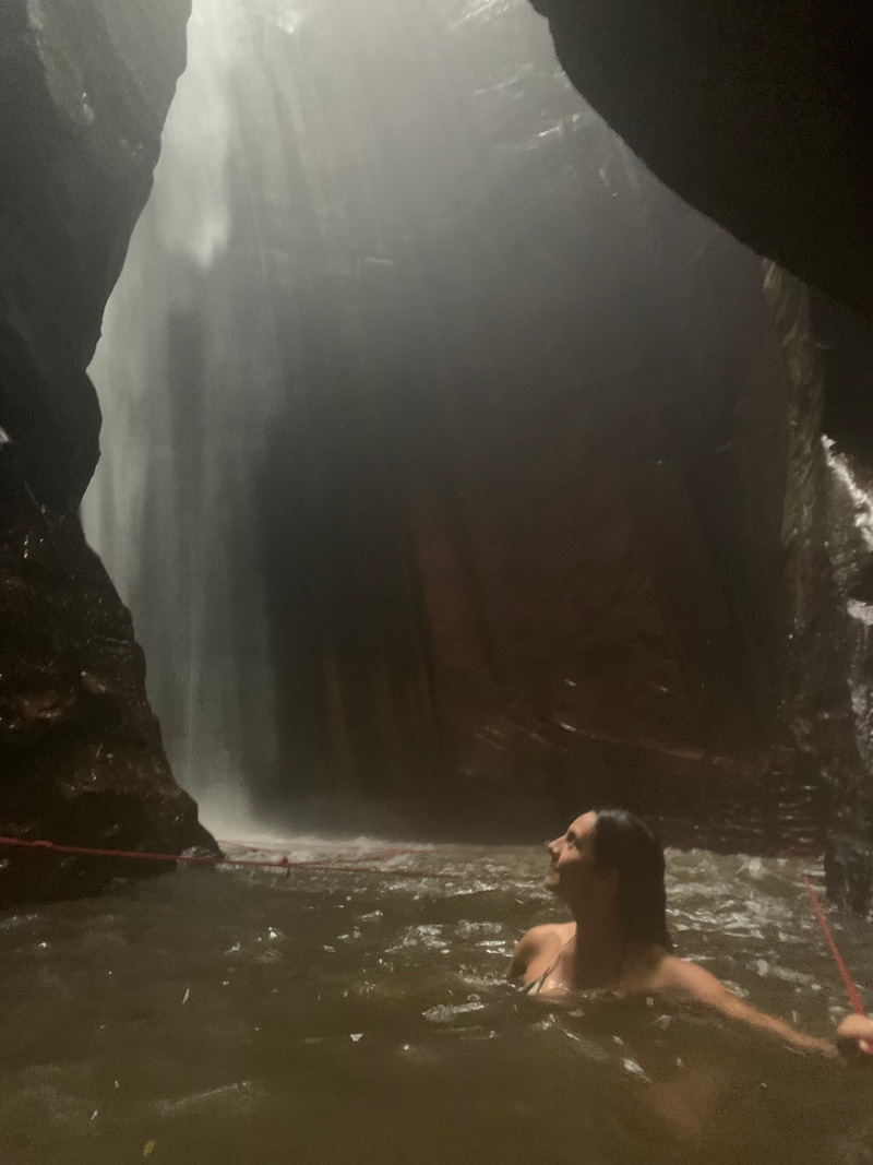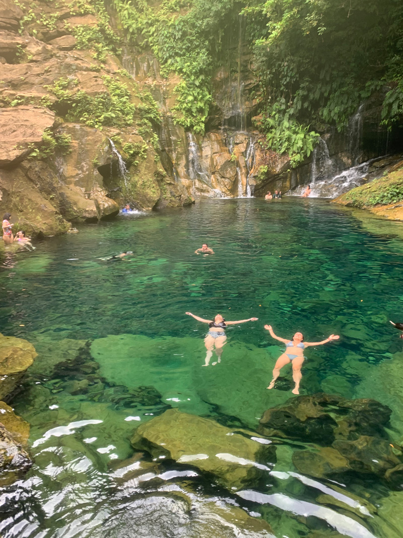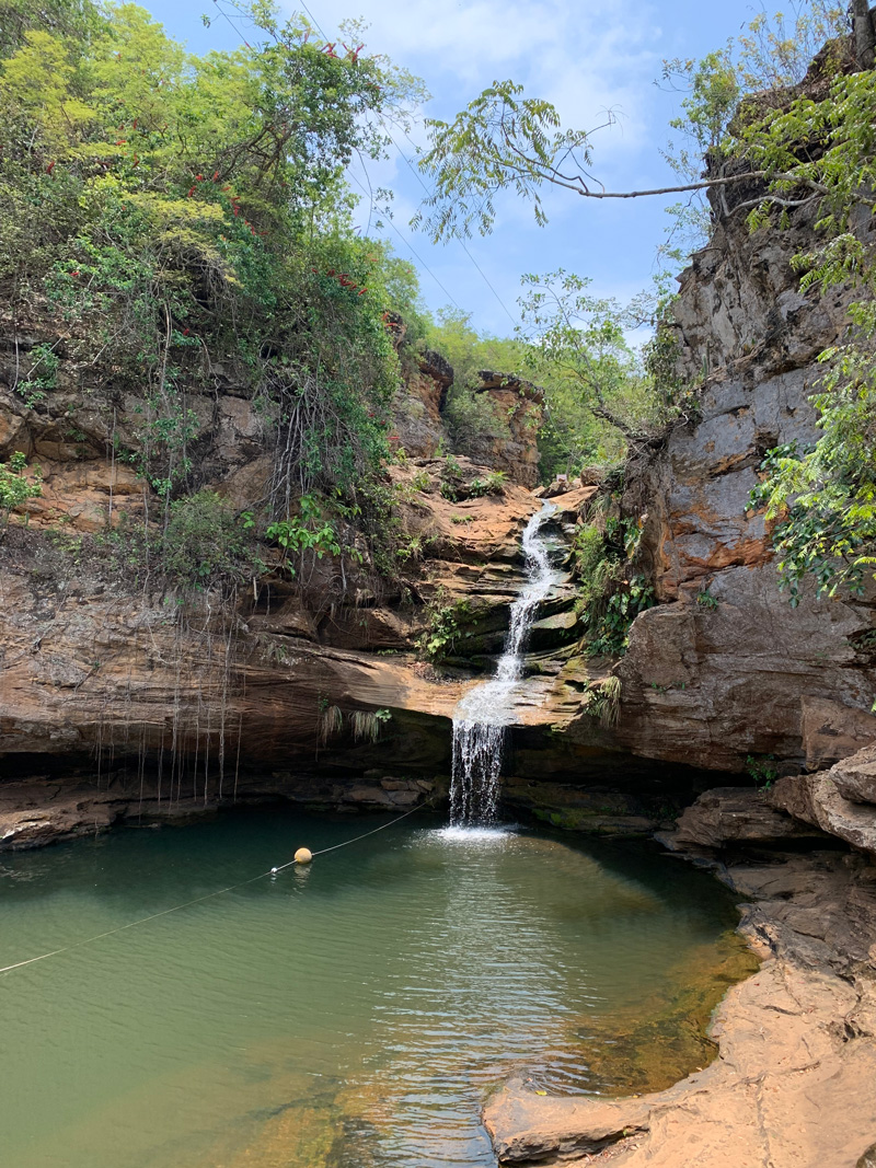 Antes de encontrarmos as nossas passageiras, eu e a Ge fomos convidadas pelos nossos parceiros locais para visitarmos uma propriedade privada que nunca havia recebido turistas antes. Já pensou que legal? Fomos as primeiras a conhecer a cachoeira e o poço que um dia irão se tornar grandes atrações do lugar.