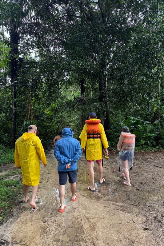 O segundo dia começou bem cedo. Às seis da manhã, a luz ainda suave revelava o despertar da mata: aves cruzando o céu em bandos, o som ritmado dos remos na água escura e a sensação de que a floresta se organiza muito antes dos visitantes abrirem os olhos.