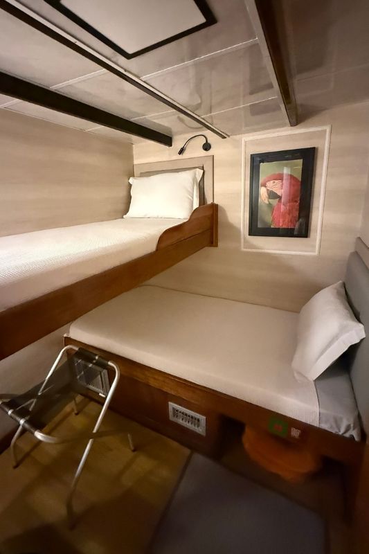 À medida que o MV Desafio avançava, a cidade ficava para trás e dava lugar a um labirinto de ilhas, igarapés e igapós. Com apenas 12 cabines e capacidade máxima para 24 passageiros, a embarcação oferece uma experiência intimista na Amazônia, com serviço dedicado e áreas panorâmicas que convidam à contemplação.