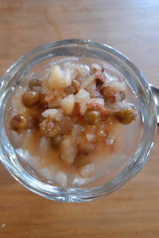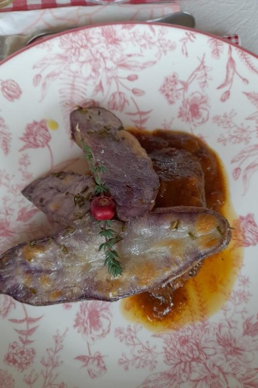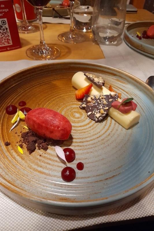 Também provamos uma sobremesa deliciosa feita com maçã e uma frutinha vermelha chamada murta. Parecia que estávamos comendo um frasco de perfume, de tantos aromas diferentes e deliciosos que vinham dali. Realmente mágico!