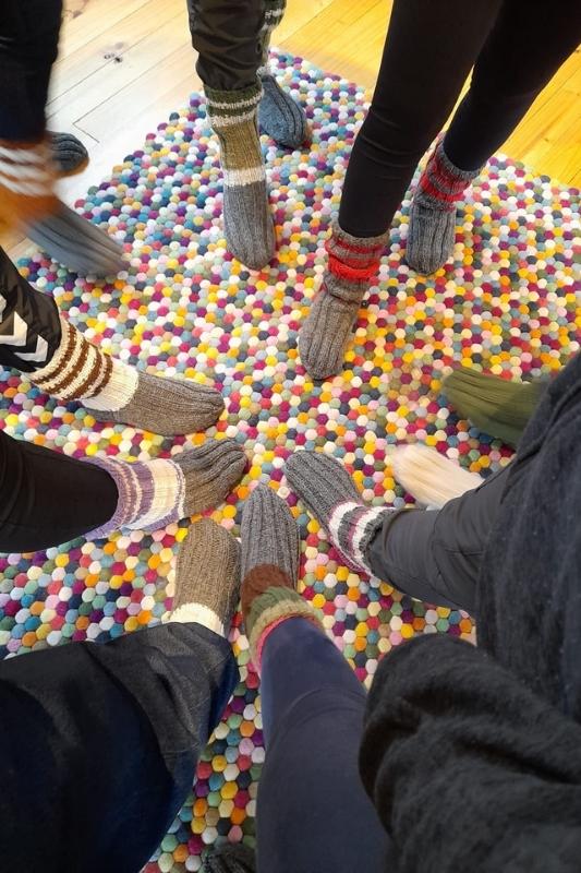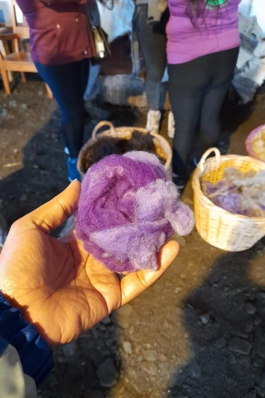 Nos deslocamos para a região de Cochamó para visitarmos um artesanato local, onde conhecemos de perto a produção artesanal de lã. Aprendemos sobre cada etapa, desde a tosquia das ovelhas, passando pela lavagem e tingimento, até chegarmos no processo final de confecção. É uma experiência que nos faz pensar em todo o processo de fabricação, muito diferente de quando você vê o produto à venda em uma loja. Além disso, foi muito interessante para aflorar os sentidos… o tato, o olfato e a visão.