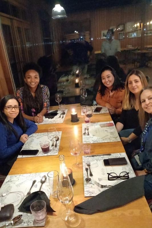 Tivemos a oportunidade de aprender a fazer empanadas chilenas salgadas e doces.  Mesmo eu, que quase nunca cozinho, aprendi a fazer a massa, a deixá-la no ponto, a dobrá-la… Tudo isso com a ajuda de todo o grupo, além da Maquis.