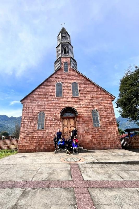 Ainda na Ilha de Chiloé, visitamos uma das diversas igrejas tombadas pela Unesco como Patrimônio da Humanidade. Todas foram construídas com madeira por conta da região, que é propícia a ter terremotos, e muitas com tetos arredondados porque os marinheiros que as construíram utilizavam os barcos nesse processo.