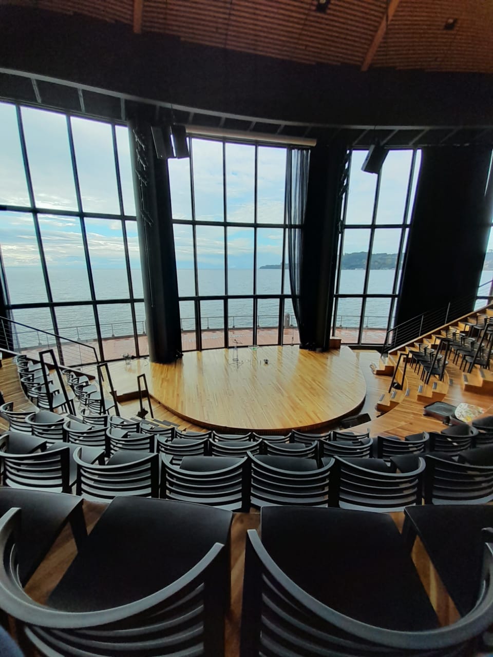 No segundo dia, fomos para Frutillar, um percurso que levou um pouco mais de uma hora. Nossa primeira visita foi ao Teatro Del Lago, que é um espaço muito respeitado pelos chilenos e também reconhecido internacionalmente. De origem alemã, o local abriga crianças locais e  oferece aulas de arte, ballet, piano e música contemporânea.